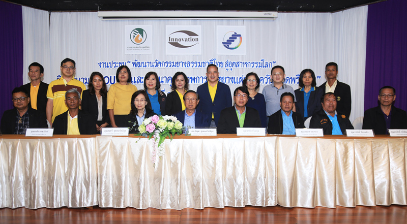 และในช่วงเย็นได้มีพิธีลงนามบันทึกความเข้าใจการประสานความร่วมมือ “วิจัยและพัฒนาคุณภาพการผลิตยางแผ่นรมควันเกรดพรีเมี่ยม” ระหว่างกลุ่มบริษัทอินโนเวชั่น กับสหกรณ์กองทุนสวนยางทั้ง 6 แห่งในจังหวัดตรังและจังหวัดนครศรีธรรมราช ได้แก่ สกก. บ้านป่ากอ จก. สกย. บ้านหนองเอื้อง จก. สกย. บ้านหนองหว้า จก. สกย. บ้านโคกแต้ว จก. สกก. นาบอน จก. สกย. คลองรอพัฒนา จก. ณ โรงแรมเรือรัษฏา จังหวัดตรัง ซึ่งสหกรณ์ทั้ง 6 แห่ง เป็นสหกรณ์ที่ได้รับการรับรองมาตรฐาน GAP และ GMP จากการยางแห่งประเทศไทย โดยบันทึกความเข้าใจนี้มีวัตถุประสงค์ เพื่อวิจัยพัฒนาและยกระดับคุณภาพผลิตภัณฑ์ยางแผ่นรมควันให้มีคุณสมบัติพิเศษ ตอบสนองความต้องการของอุตสาหกรรมในระดับโลก