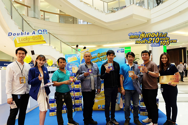 ดั๊บเบิ้ล เอ โรดโชว์ออฟฟิศชั้นนำทั่วกรุง เปิดตัวแคมเปญ Double A QR Lucky in Gold รอบใหม่ ขอบคุณลูกค้าที่ใช้กระดาษดั๊บเบิ้ล เอ มอบโชคทอง 210 รางวัล ทองคำหนักรวม 105 บาท เพียงสแกนคิวอาร์โค้ดข้างกล่อง 1 QR ได้ 1 สิทธิ์ ลุ้นทองคำหนัก 50 สตางค์ 30 รางวัลทุกเดือน สามารถร่วมสนุกจนถึงสิ้นปี ติดตามรายละเอียดและรายชื่อผู้โชคดีได้ทุกเดือนทาง Facebook Double A Club หรือเว็บไซต์ QRlucky.DoubleApaper.com