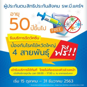 ผู้ประกันตนสิทธิประกันสังคม รพ.บี.แคร์ฯ อายุ 50 ปีขึ้นไป รับบริการฉีดวัคซีน ป้องกันโรคไข้หวัดใหญ่ 4 สายพันธุ์ ฟรี‼️