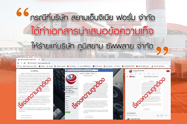 ภูมิสยาม ซัพพลายฯ ชี้แจงความถูกต้องจากกรณีที่บริษัท สยามเอ็นจิเนีย ฟอรั่ม จำกัด ได้จัดทำเอกสารนำเสนอข้อความเท็จได้กล่าวให้ร้ายแก่บริษัท ภูมิสยาม ซัพพลาย จำกัด และได้มีการฟ้องร้องเกิดขึ้น ท้ายที่สุดศาลได้มีคำสั่งให้บริษัท สยามเอ็นจิเนีย ฟอรั่ม จำกัด ลงประกาศขอโทษบริษัท ภูมิสยาม ซัพพลาย จำกัด ในเพจwww.facebook.com/siammicropile ช่องทางยูทูป https://youtu.be/eKMNVRgNQdc และในเว็บไซต์ www.siam-engineer.co.th รวมถึงลงประกาศขอโทษทางหนังสือพิมพ์ 2 ฉบับ คือหนังสือพิมพ์ข่าวสด และหนังสือพิมพ์กรุงเทพธุรกิจ โดยมีข้อความดังนี้