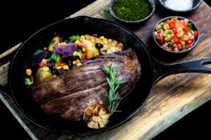 หากใครที่ไม่ค่อยชอบรับประทานเนื้อแบบติดมัน ขอแนะนำให้ลิ้มลองเมนู ‘สเต็กเนื้อแฟลงค์ในสไตล์อาร์เจนตินา (Flank Steak Argentina Style)’ เนื้อส่วนแฟลงค์หรือเนื้อใบบัว 400 กรัม นำไปเซียร์บนกระทะ เสิร์ฟมาในสไตล์อาร์เจนตินากับซอสชิมิชูรี ซัลซ่าคริโอลลา เกลือ ผัดมันเทศ 2 สี ถั่วดำ และข้าวโพด ราคาสุทธิ 1,500 บาท