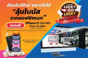 ออฟฟิศเมท จัดแคมเปญใหญ่ต้อนรับปีใหม่ เอาใจ SME จัดซื้อองค์กร และเหล่านักช้อป ให้ช้อปคุ้มกับสินค้าลดราคาแรงโดนใจ แล้วลุ้นฟินขั้นสุดรับเทศกาลแห่งความสุข กับ “Lucky Bill Lucky Bonus” #ออฟฟิศเมทใจดีแจกiPhone11ฟรี20เครื่อง ช้อปสินค้าอุปกรณ์สำนักงาน ไอที แก็ดเจ็ท เครื่องใช้ไฟฟ้า เฟอร์นิเจอร์ รวมถึงสินค้าเพื่อธุรกิจรายการใดก็ได้จากออฟฟิศเมททุกช่องทางการขาย ทุกใบเสร็จรับสิทธิ์ลงทะเบียนลุ้นรับ iPhone 11 (64 GB) รวมจำนวนทั้งสิ้น 20 รางวัล มูลค่ารวม 498,000 บาท ช้อปเท่าไหร่ก็มีสิทธิ์ลุ้น เพียงเก็บใบเสร็จเพื่อลงทะเบียนรับสิทธิ์ โดย Add Line: @OfficeMate และกรอกข้อมูลลงทะเบียนให้ถูกต้องครบถ้วน ตั้งแต่วันนี้ – 31 ม.ค. 63 ประกาศรายชื่อผู้โชคดี ในวันที่ 18 กพ. 63 ที่ Facebook: OfficeMate