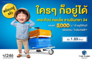 เดอะคิวบ์ พรีเมียม รามอินทรา 34 (The Cube Premium Ramintra 34) คอนโดมิเนียมใหม่สไตล์โมเดิร์นโลว์ไรส์ (Low Rise) สูง 8 ชั้น สร้างเสร็จใหม่พร้อมเข้าอยู่เดือนกันยายนนี้ พัฒนาและบริหารโครงการโดย บริษัท คิวบ์ เรียล พร็อพเพอร์ตี้ จำกัด จัดโปรโมชั่นพิเศษ ‘ใคร ๆ ก็อยู่ได้ เพียงจอง 5,000 บาท เข้าอยู่ได้ทันที’ สำหรับผู้ที่ต้องการเข้าอยู่อาศัยเองและต้องการลงทุนอสังหาริมทรัพย์ ราคาเริ่มต้น 1.89 ล้านบาท ขนาดห้องตั้งแต่ 26.5 – 34 ตารางเมตร พร้อมเฟอร์นิเจอร์คุณภาพสูงจากแบรนด์ STARMARK ครบทุกฟังก์ชั่น (Fully Furnished) และเพิ่มความสะดวกสบายด้วยระบบโฮมออโตเมชั่น (Home Automation) ที่ควบคุมและสั่งการผ่านสมาร์ทโฟนหรือแทบเลต พิเศษกับระบบช่วยเหลือฉุกเฉินด้วยเครื่องกระตุกหัวใจไฟฟ้าอัตโนมัติ (AED) เพื่อให้ความช่วยเหลือเบื้องต้นจากภาวะหัวใจหยุดเต้นเฉียบพลัน ประตูระบบดิจิตอลจากซัมซุง (Digital Door Lock) สุขภัณฑ์ระบบอัตโนมัติพร้อมฉากกั้นอาบน้ำแบบกระจกนิรภัย และฝักบัวแบบเรนชาวเวอร์ครบเซต เพิ่มความสะดวกภายในโครงการด้วยบริการตู้รับ-ส่งพัสดุ/สินค้าอัจฉริยะ สระว่ายน้ำระบบเกลือและสระสปาเพื่อสุขภาพระบบจากุซซี่ (Jacuzzi) โคเวิร์กกิ้งสเปซ (Co Working Space) ระบบอินเตอร์เน็ตไร้สาย (Wi-Fi Internet) บริเวณโถงล็อบบี้และพื้นที่ส่วนกลาง ห้องฟิตเนส ห้องซาวน่า (แยกชาย/หญิง) สนามเด็กเล่นพร้อมเครื่องเล่น สวนหย่อม กล้องโทรทัศน์วงจรปิด CCTV รอบโครงการ คีย์การ์ด (Key Card) เข้าอาคารและลิฟท์แบบล็อคชั้น ระบบรักษาความปลอดภัยตลอด 24 ชั่วโมง โครงการเดินทางสะดวกติดถนนใหญ่ ใกล้รถไฟฟ้าสายสีชมพู และสายสีเทา (ในอนาคต) ใกล้ทางด่วนรามอินทรา – อาจณรงค์ สะดวกทั้งเข้าตัวเมืองและออกต่างจังหวัด ใกล้สถาบันการศึกษา โรงเรียนนานาชาติ และทุกระดับชั้น ใกล้แหล่งธุรกิจ โรงพยาบาล ศูนย์การค้า ตลาด และร้านสะดวกซื้อ ฯลฯ ชุมชนและบรรยากาศโดยรอบปลอดภัย สะอาด และมีความเป็นส่วนตัว (*เงื่อนไขเป็นไปตามที่บริษัทกำหนด) ชมห้องตัวอย่างและโครงการจริงได้ทุกวันไม่เว้นวันหยุด ติดตามความเคลื่อนไหวของโครงการได้ทาง www.thecube-condo.com, www.facebook.com/The Cube Condominium หรือสอบถามเพิ่มเติมโทร. 1246 และไลน์บริษัท : @The Cube Condo และ www.thecube-condo.com
