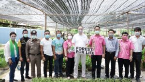 คุณกิตติพันธุ์ อุยยามะพันธุ์ ผู้อำนวยการอาวุโสโครงการเดอะ ฟอเรสเทียส์ โดย MQDC และคุณชาลอต โทณวณิก ที่ปรึกษาฝ่ายสื่อสารองค์กร บริษัทแมกโนเลีย ควอลิตี้ ดีเวล็อปเม้นต์ คอร์ปอเรชั่น (MQDC) ต้อนรับ คุณอนุชา อินทศร นายอำเภอสัตหีบ ในโอกาสนำคณะเทศบาลตำบลนาจอมเทียน เยี่ยมชมแปลงเพาะกล้าไม้ 144,000 ต้น ในโครงการ “Forest For Life สร้างป่าสร้างชีวิต” ที่มอบให้ชาวบ้านชุมชนบ้านอำเภอกว่า 120 ครอบครัว ได้ดูแลในระยะเวลา 3 เดือน ก่อนนำไปเพิ่มพื้นที่สีเขียวให้หน่วยงานต่างๆ ในตำบลนาจอมเทียน และร่วมการปลูกป่าในโครงการป่าสิริเจริญวรรษ อันเนื่องมาจากพระราชดำริ พร้อมสมทบเงินช่วยเหลืออีกครอบครัวละ 15,000 บาท โดยมีคุณอนุสรณ์ สายนภา ผู้นำชุมชนบ้านอำเภอ อธิบายถึงแผนการดำเนินการตามโครงการ ที่แปลงสาธิตเพาะกล้าไม้ ตำบลนาจอมเทียน จังหวัดชลบุรี มีครูป่าไม้ จากกรมป่าไม้ ข้าราชการตำรวจ ข้าราชการและ เจ้าหน้าที่เทศบาลตำบลนาจอมเทียน พร้อมตัวแทนชุมชน และผู้สนใจเข้าร่วมงานกันอย่างอบอุ่น