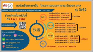 คณะมนุษยศาสตร์ มศว เปิดอบรมหลักสูตรภาษาจีนสำหรับบุคคลทั่วไปและนิสิตนักศึกษา รุ่น3/62