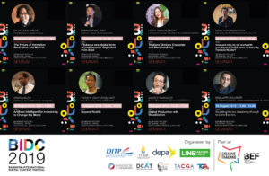 Bangkok International Digital Content Festival (BIDC 2019) งานแสดงนิทรรศการ จัดประชุมสัมมนา และงานเจรจาธุรกิจที่รวมผู้ประกอบการอุตสาหกรรมดิจิทัลคอนเทนท์ที่ยิ่งใหญ่ที่สุดของประเทศไทย จัดโดย 3 ภาครัฐ กรมส่งเสริมการค้าระหว่างประเทศ กระทรวงพาณิชย์ กับสำนักงานส่งเสริมการจัดประชุมและนิทรรศการ (องค์การมหาชน) หรือ TCEB และสำนักงานส่งเสริมเศรษฐกิจดิจิทัล หรือ ดีป้า (depa) ร่วมกับภาคเอกชน LINE CREATORS MARKET โดย บริษัท ไลน์ คอมพานี (ประเทศไทย) จำกัด และ 5 สมาคมจากภาคอุตสาหกรรมดิจิทัลคอนเทนต์ไทย ประกอบด้วย สมาคมผู้ประกอบการแอนิเมชันและคอมพิวเตอร์กราฟิกส์ไทย (TACGA) สมาคม Bangkok ACM SIGGRAPH (BASA) สมาคมดิจิทัลคอนเทนท์ไทย (DCAT) สมาคมอุตสาหกรรมซอฟแวร์เกมไทย (TGA) และสมาคมอีเลิร์นนิ่งแห่งประเทศไทย (e-LAT)