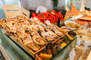 Other highlights include freshly cooked pizzas and pasta, a Mediterranean Grill, Seafood on Ice (with Alaska king crab, Maine Lobster, Shrimp rosemary, Manila clams and more), fresh oyster selections, Terrine, Indian, Japanese, Chinese; roasted duck and suckling pig, carvery, desserts and many other stations.
