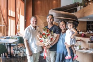 The famous actor and celebrity in Thailand Neung Chalad Na Songkhla (2nd left) and family was warmly welcomed by Jari Nielsen (left), Resident Manager of Centara Grand Mirage Beach Resort Pattaya during his stay at the resort recently.