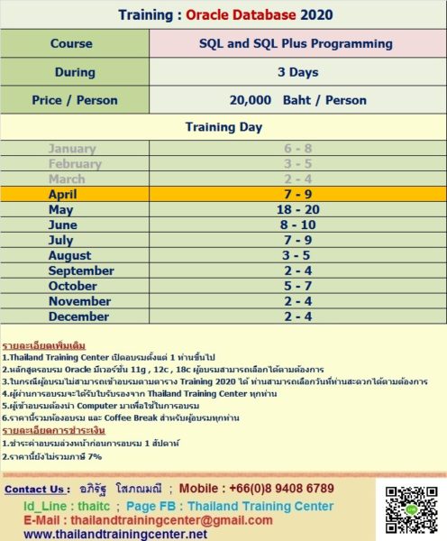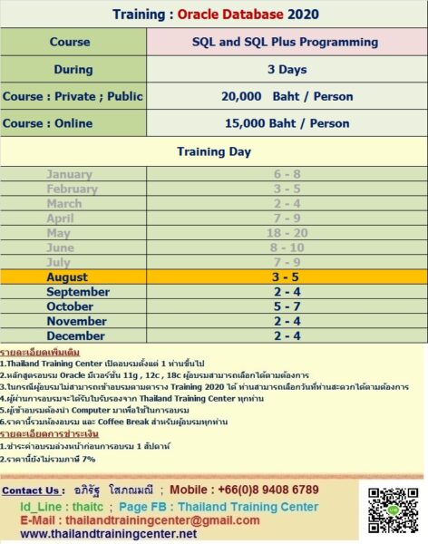 Thailand Training Center เปิดอบรมหลักสูตร Oracle Database : SQL and SQL...