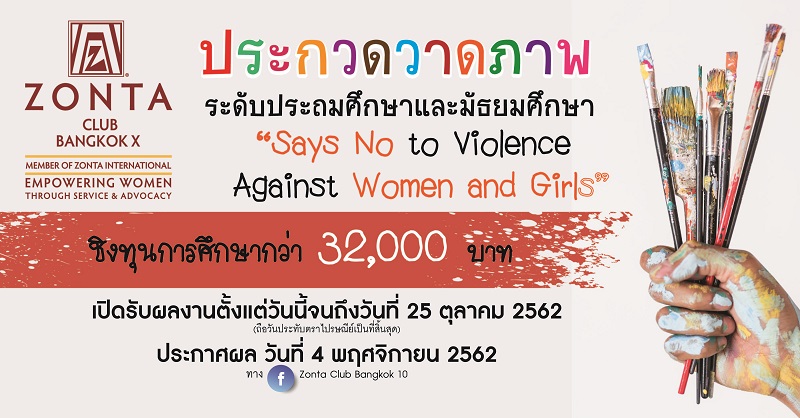 สโมสรซอนต้า กรุงเทพ 10 จัดประกวดวาดภาพ “Says No to Violence Against Women and...