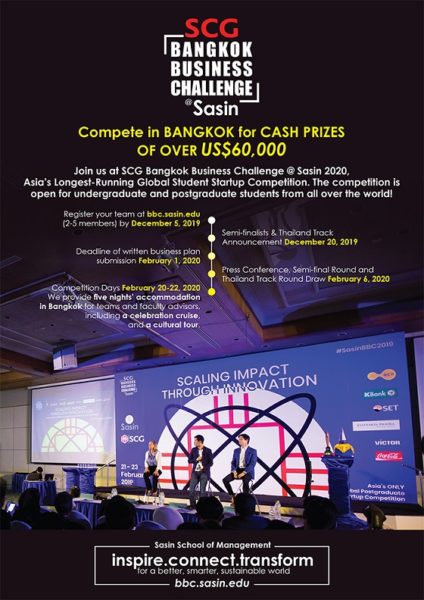 ขอเชิญนิสิต นักศึกษา เข้าร่วมการแข่งขันสร้างแผนธุรกิจสตาร์ทอัพระดับโลก “SCG Bangkok Business Challenge at Sasin 2020” สมัครด่วนภายใน...