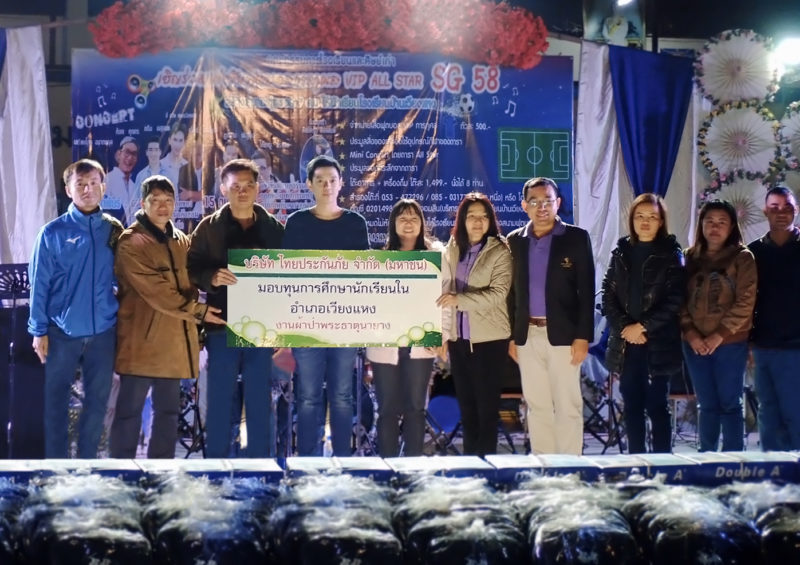 ดร.มหัทธนะ อัมพรพิสิฏฐ์ กรรมการผู้จัดการ บริษัท ไทยประกันภัย จำกัด (มหาชน) พร้อมคณะผู้บริหารและพนักงาน TIC ไทยประกันภัย มอบทุนการศึกษาและอุปกรณ์การเรียนให้กับนักเรียนในอ.เวียงแหง จ.เชียงใหม่ พร้อมร่วมกิจกรรมเตะฟุตบอลกระชับมิตรกับเยาวชน สร้างความสนุกสนานและความประทับใจแก่คนในชุมชน