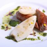 • “Traditional Ocean and Land” (Squid a la plancha grilled sausage parsley garlic);